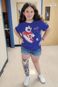 Mariah is a huge fan of the Buffalo Bills and is overjoyed that her prosthesis is emblazoned with the team’s logo.