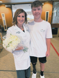 Owen was immediately seen by pediatric orthopedic surgeon Terri Cappello, M.D., who said that in trauma situations, training and instinct work together to determine the best course of action. Dr. Cappello performed a rare ankle disarticulation — known as a Syme amputation — which removes the foot at the ankle while preserving the heel pad to create a weight-bearing limb for a specialized prosthesis. She has performed this procedure only twice in her 25-year career.
