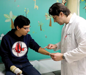 Juan Diego, un paciente joven, llegó a Shriners Children’s Boston tras sobrevivir a un accidente por corriente eléctrica que le causó graves lesiones en ambas manos. Sin embargo, tras una serie de procedimientos reconstructivos avanzados, incluidas microcirugía y terapia láser, y finalmente una prótesis, Juan Diego recuperó la sensibilidad y la movilidad.
